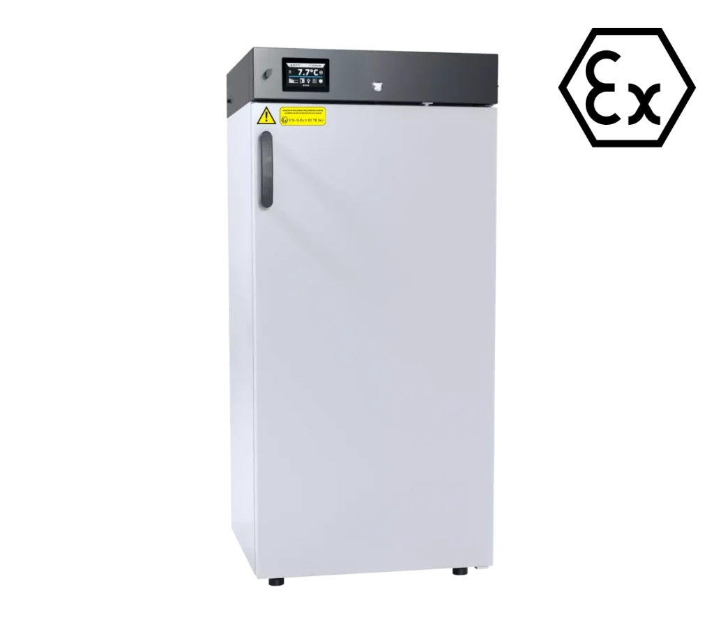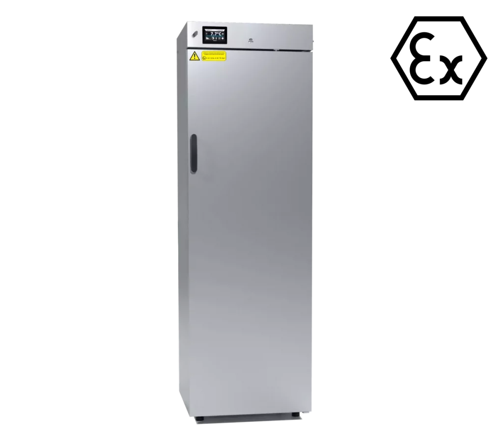 Az ATEX laboratóriumi hűtők kifejezetten olyan kémiai és laboratóriumi minták biztonságos tárolására készültek, amelyek robbanásveszélyes atmoszféra kialakulását okozhatják. A készülékek megfelelnek az ATEX 2014/34/EU irányelv követelményeinek, és Zone 2 besorolású környezetekhez alkalmazhatók.